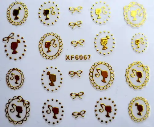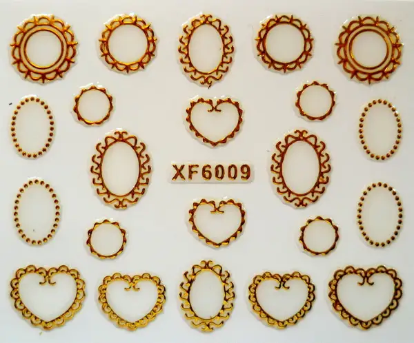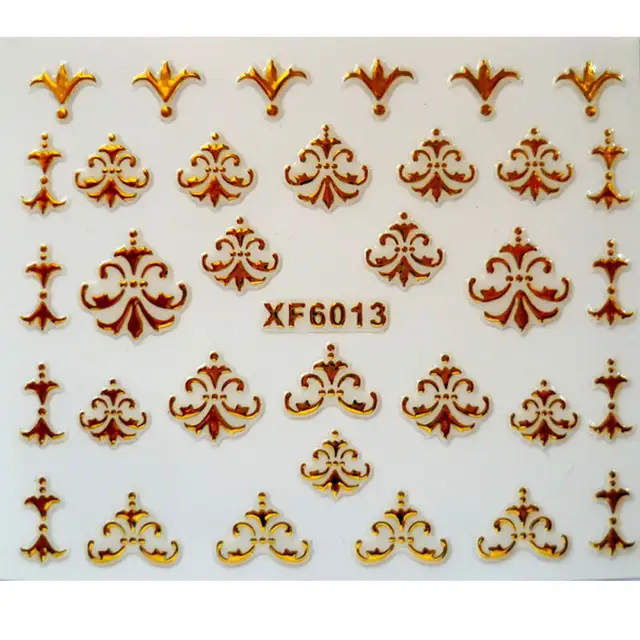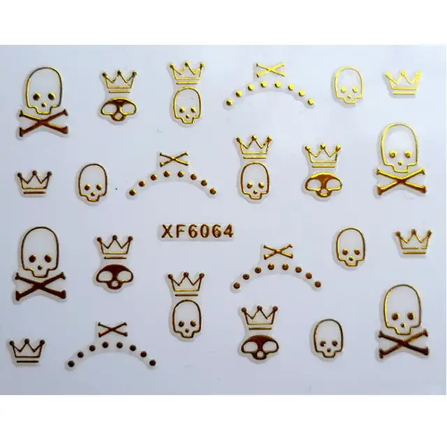 سامسونج ثلاثية الأبعاد ملصقات الأظافر ستار/الجمجمة/تاج/الزهور صورة نقل ملصق لاصق ذهبي اللون مسمار الفن زينة XF6059